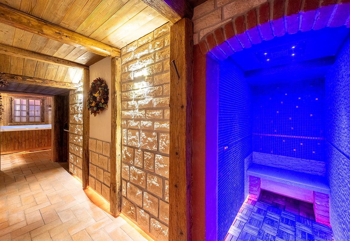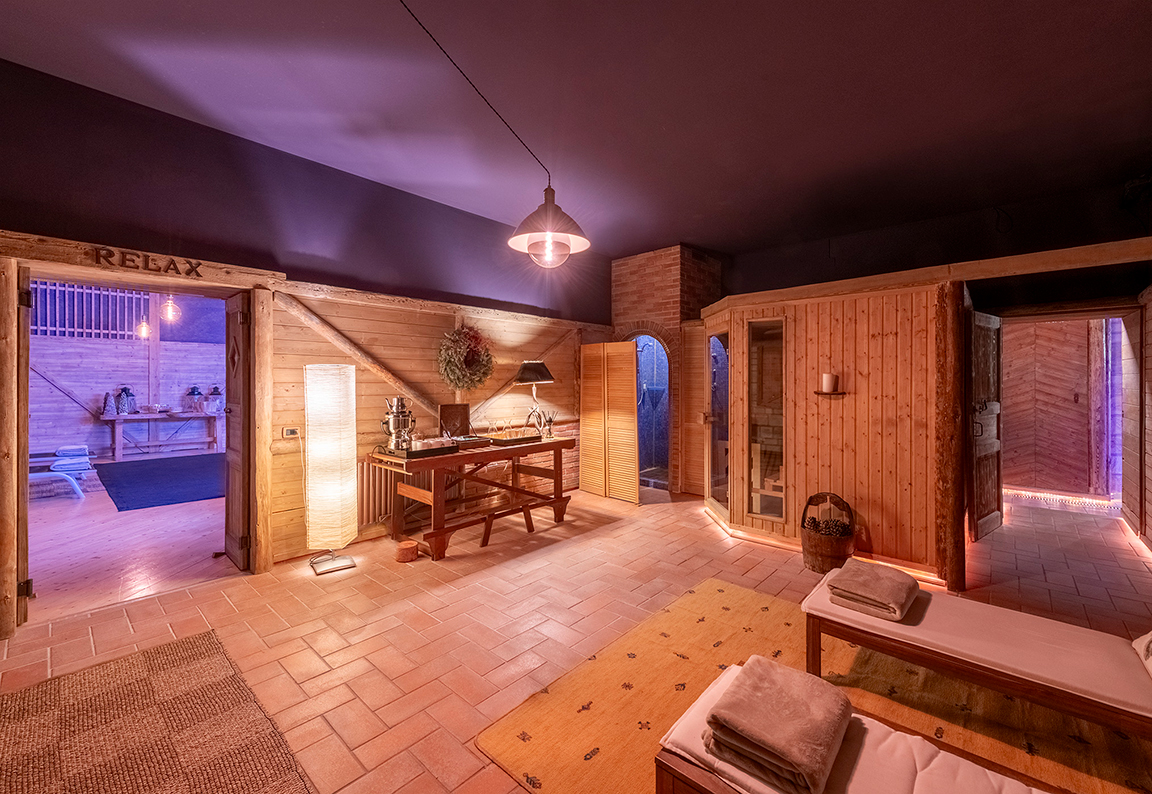 L’atmosfera richiama una vecchia baita di montagna, dove legni, travi e portoni sono stati recuperati da quello che era il vecchio fienile. Nel Wellness & Spa troverete a disposizione bevande rinfrescanti e depurative.