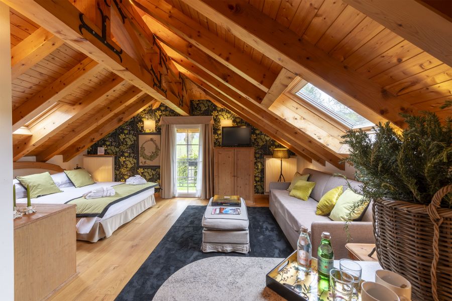 Le Junior Suite 107, 108, 109 e 110 hanno rispettivamente 30, 30 e 33 mq. Sono dotate di un letto matrimoniale sul soppalco e di un divano letto (sommier) e il bagno è dotato di vasca, hanno un balcone con vista sul campo da golf. La camera 110 (monolocale) ha 36 mq e può ospitare fino a 4 persone, è dotata di letto matrimoniale e divano letto (sommier). Il bagno è con vasca. Ha un terrazzo con vista su Cima Ekar, Monte Verena, le Melette e Monte Zebio. Particolarmente adatto a famiglie con bambini.