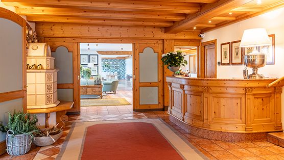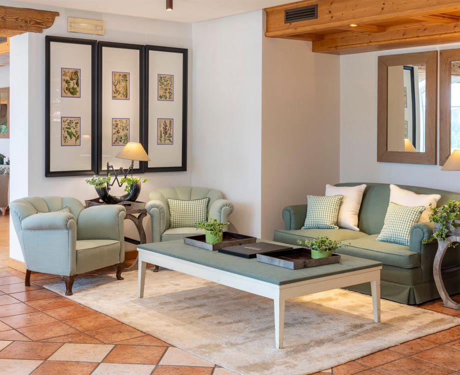 L’ampio salotto con stube tirolese e libreria è l’ambiente perfetto per potervi rilassare leggendo un libro, gustando una tisana o un aperitivo, oppure semplicemente godendo della vista privilegiata che spazia dai prati del campo da golf ai boschi circostanti, fino alle cime dei monti più alti del comprensorio dell’Altopiano.
