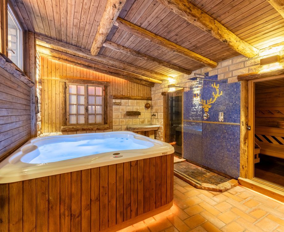 La zona Wellness dispone di due saune finlandesi, bagno turco, doccia emozionale, vasca idromassaggio e di una ampia zona relax. L’atmosfera richiama una vecchia baita di montagna dove legni, travi e portoni sono stati recuperati da quello che era il vecchio fienile. Nel Wellness troverete a disposizione bevande rinfrescanti e depurative. Rilassatevi e ricaricate le vostre energie trascorrendo un momento di pace in un contesto riservato.